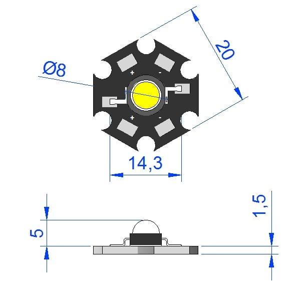 Dioda Power Led 3W na radiatorze (płytce MCPCB)