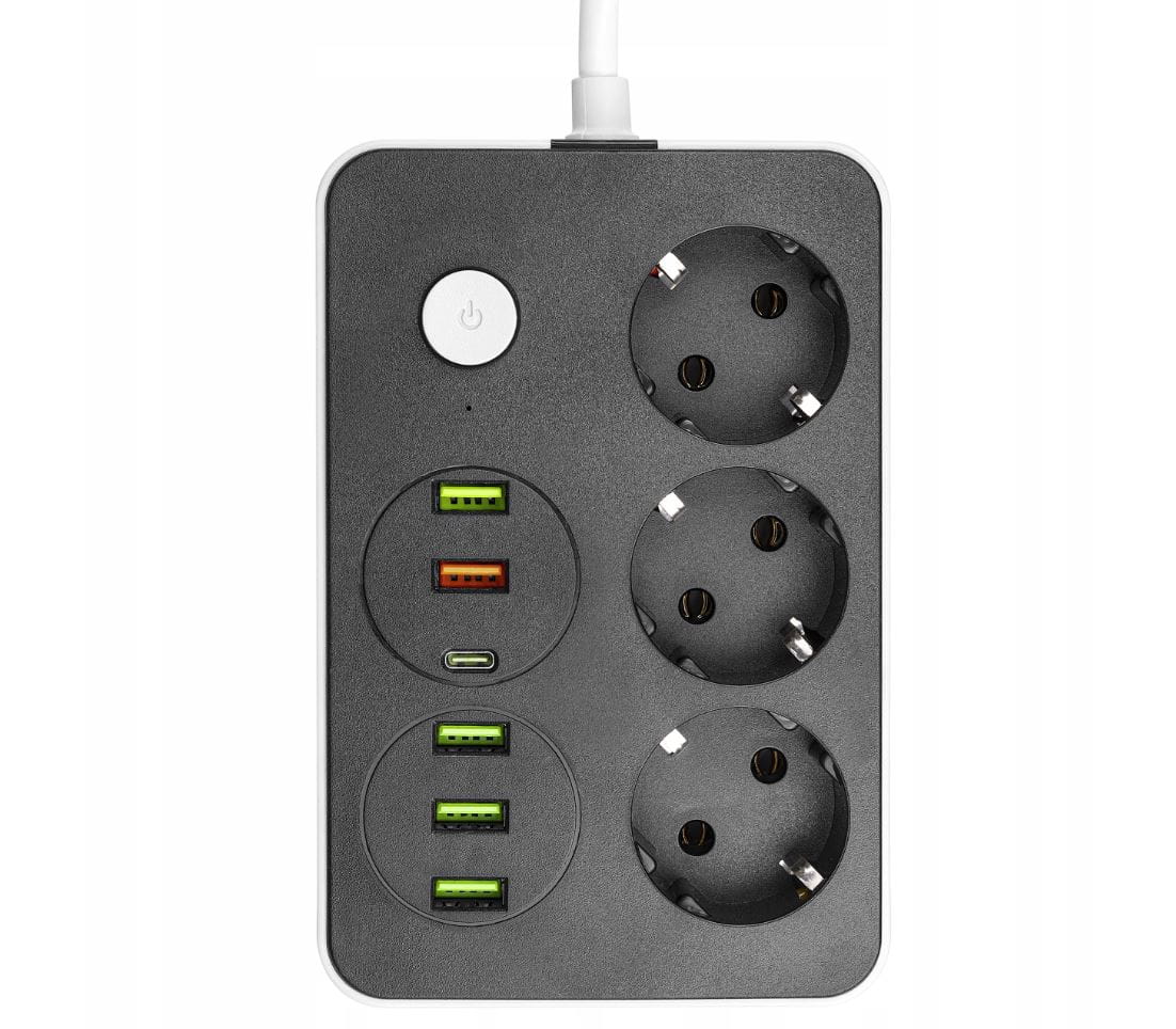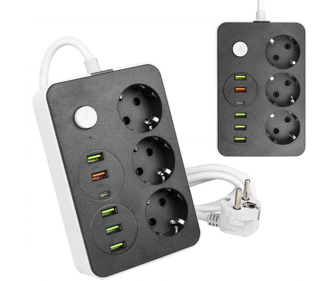 Listwa zasilająca 3x 230V 5x USB 1x USB-C przedłużacz 2m. wyłącznik