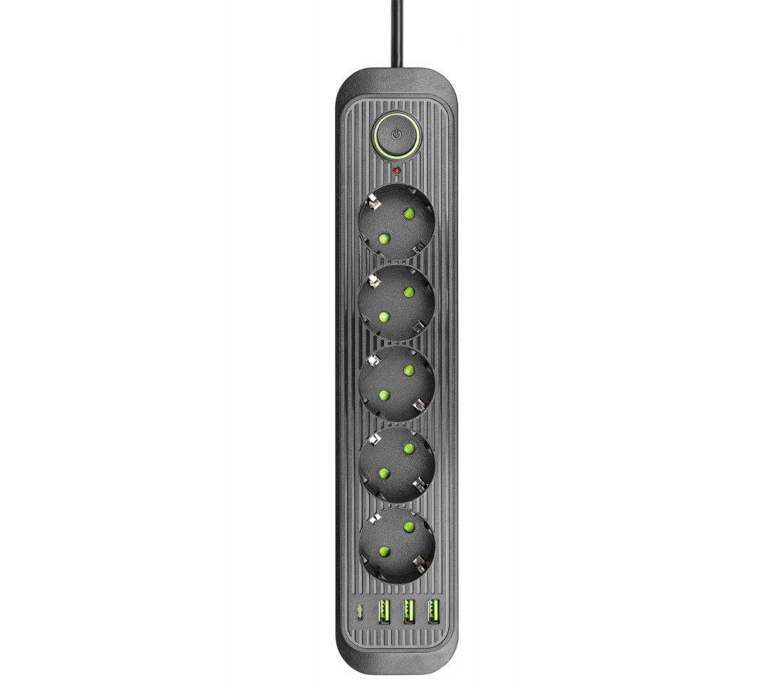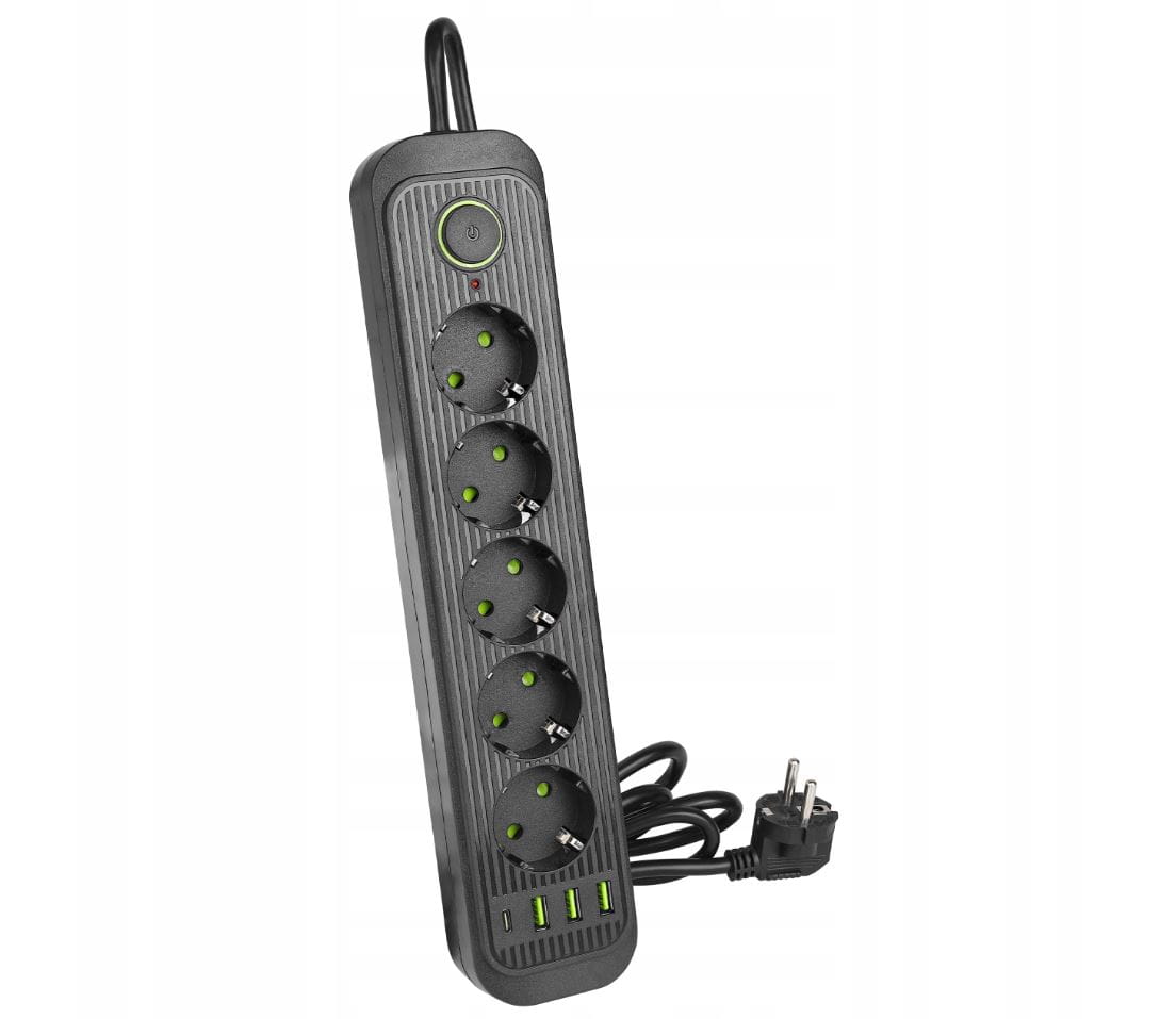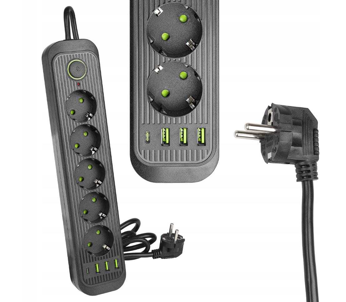 Listwa zasilająca 5x 230V 3x USB 1x USB-C przedłużacz 2m. wyłącznik